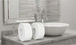Cost-effective toilet paper, jumbo rolls for public facilities.