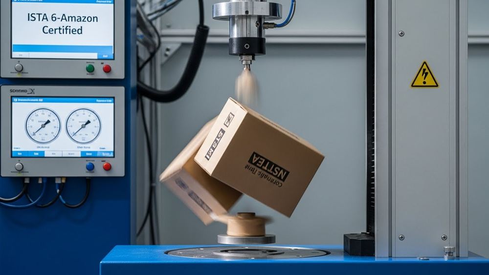 The ISTA 6-Amazon.com-SIOC protocol simulates 18-inch free-fall drops, random vibrations, and compression. This testing validates that packaging survives Amazon’s automated logistics chain, preventing high return rates and damage-related chargebacks.