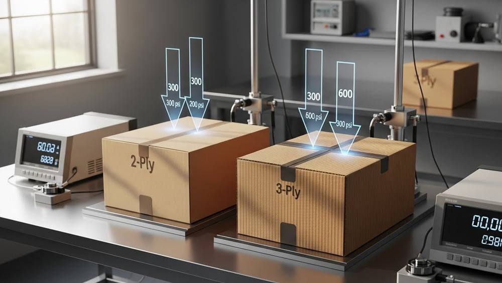 3-ply or double-wall configurations integrate two fluted mediums and three liners to achieve significantly higher compression thresholds. These structures reach Mullen ratings from 2413 kPa (350 psi) up to 4137 kPa (600 psi). The structural advantage is evident in ECT comparisons, where 3-ply options reach 82 lb/inch. Choosing the correct flute profile further refines performance; A-flute sections with a 4.70 mm height prioritize top-to-bottom stacking strength, while C-flute profiles balance vertical support with internal cushioning for delicate cargo.