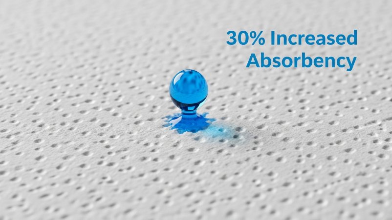 - Point-to-point embossing increases absorbency by 30% regardless of the pulp mixture.