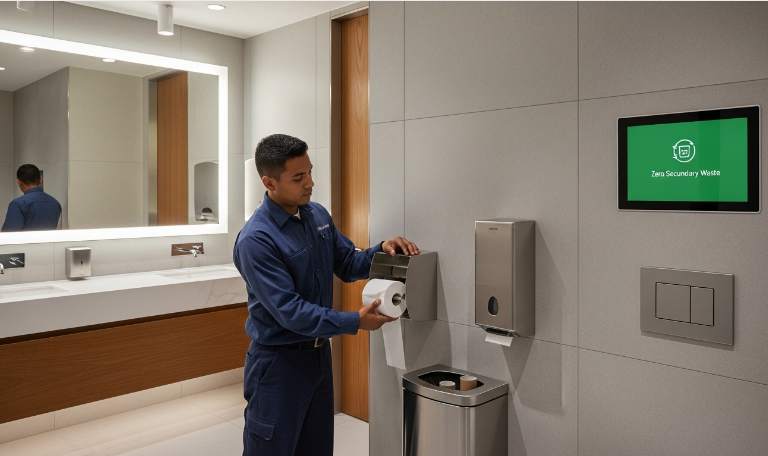Traditional paper procurement involves shipping thousands of cardboard tubes that offer zero functional value to the end-user. Eliminating this secondary waste stream directly impacts corporate sustainability metrics across three key reporting areas.