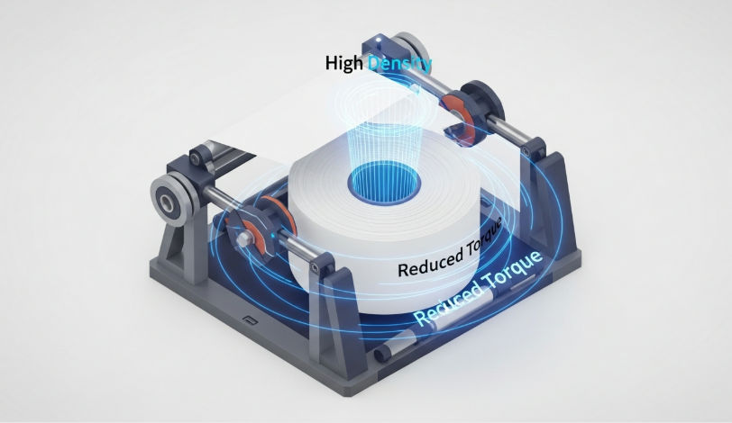 Modern 2026 rewinding systems utilize real-time sensors to monitor the increasing diameter of the jumbo roll. As the roll grows, the system must gradually reduce winding tension to keep the structure stable. We use these precise torque adjustments to prevent the high-pressure outer layers from crushing the softer inner layers, a common failure point in lower-tier coreless production that leads to “egg-shaped” rolls.