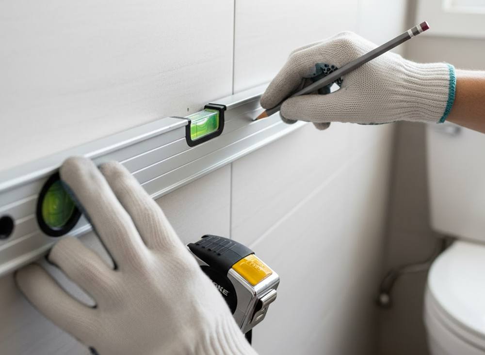 Hold the bracket template against the wall at your marked height and check alignment using a level. Avoid judging by eye—tile lines or wall patterns can create visual distortion. A truly horizontal installation maintains both functionality and visual balance, particularly in professional or customer-facing environments. Confirm alignment on both sides before drilling pilot holes, as correcting uneven placement afterward can cause wall damage and extend installation time.