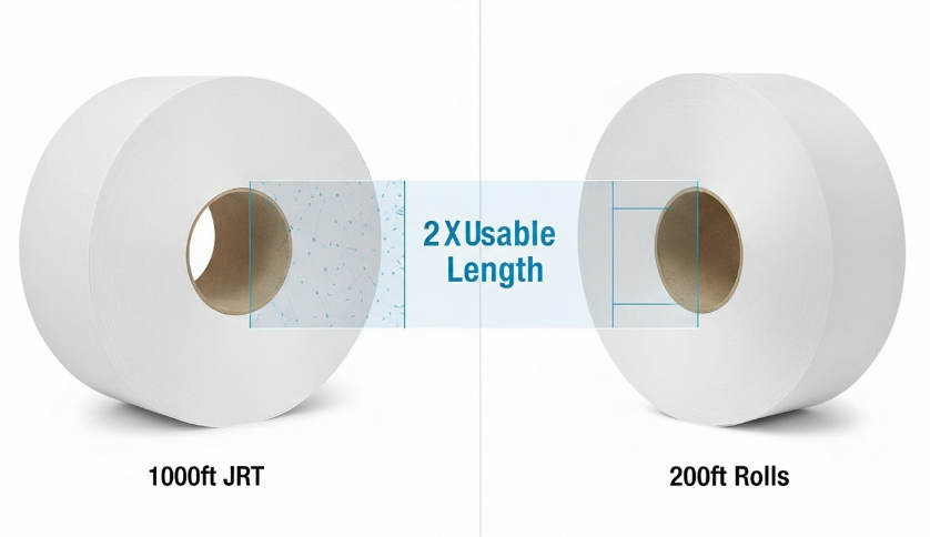 Transitioning to 2,000ft jumbo rolls effectively cuts restroom maintenance touchpoints by 50% compared to standard 1,000ft commercial formats, allowing facility managers to reallocate labor hours toward high-value deep cleaning.