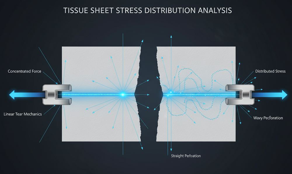 - Tear Force Balance: The ratio of “ties” to “cuts” is engineered to ensure sheets remain connected on the roll but release instantly with minimal pull force.