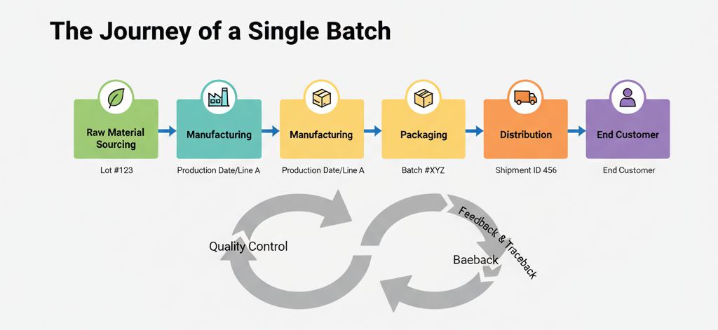 Traceability begins the moment raw materials arrive at the supplier’s facility, where each lot number and supplier detail is logged. As production proceeds, data such as manufacturing date, production line, shift, process parameters, and packaging identifiers are recorded and linked to the material batch. Finally, distribution details including shipment IDs and destinations complete the chain. This comprehensive documentation enables seamless forward and backward tracking, making it possible to pinpoint exactly which products need to be recalled and which remain unaffected—turning a potential catastrophe into a controlled, verifiable incident.