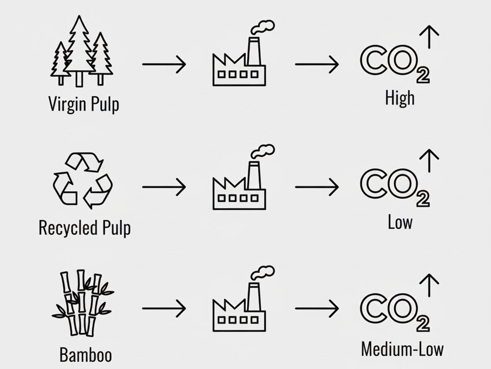 Environmental Impact Comparison Recycled fibers reduce landfill volumes, cut energy and water consumption, and lower CO2 emissions, supporting circular economy goals. Virgin fibers from certified forests can aid regeneration but typically carry higher carbon and resource loads… Prioritize suppliers with verified certifications and full lifecycle data to quantify the true carbon footprint of [their] toilet paper.