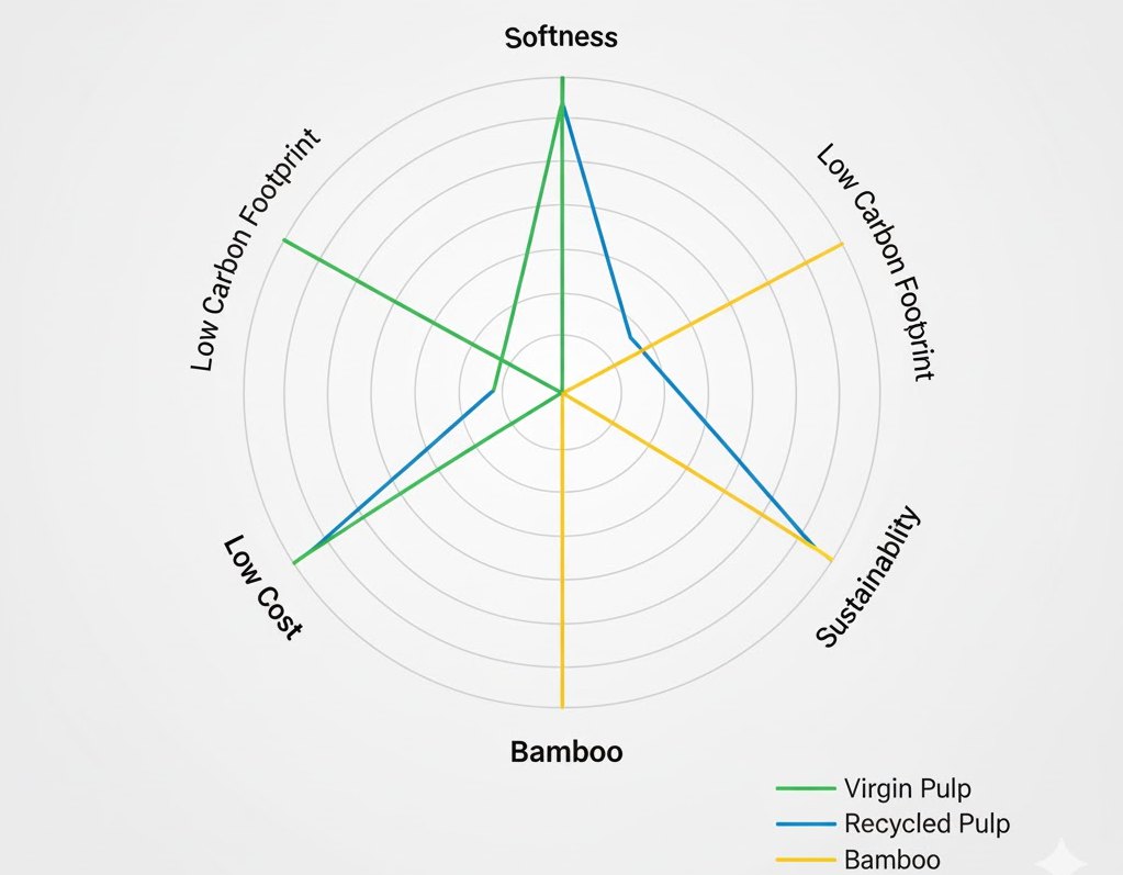 The most common debate for procurement teams is virgin pulp vs recycled toilet paper. The table below consolidates the critical trade-offs
