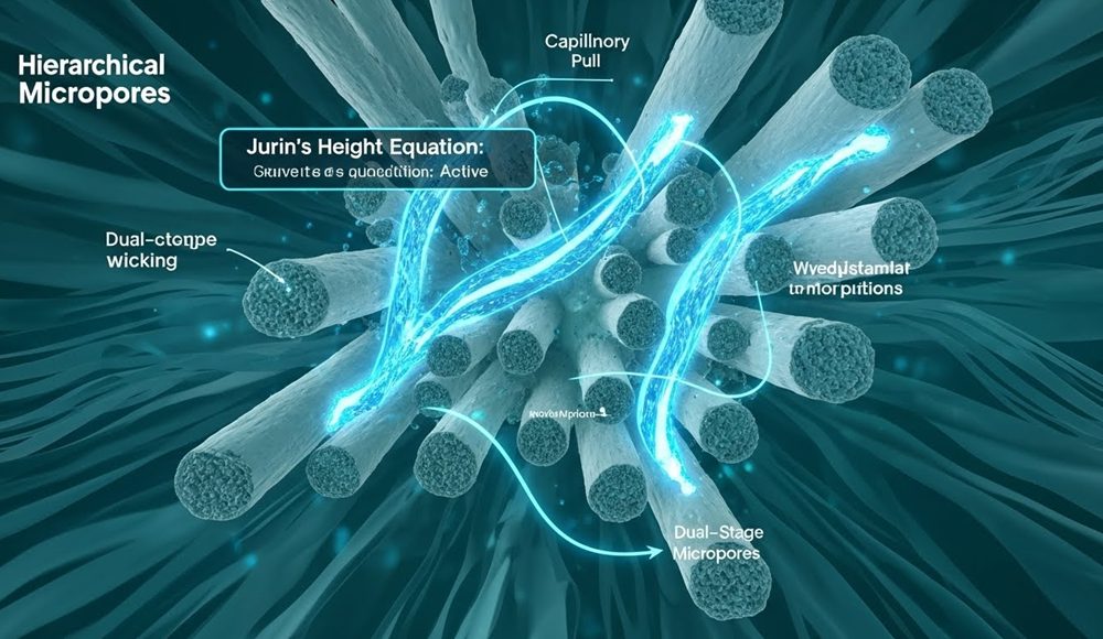 Liquid transport in wood pulp relies on capillary pressure as its primary engine. Smaller micropore radii generate a more powerful pull, effectively moving water upward against gravity according to Jurin’s height equation. This physical mechanism determines how effectively a tissue product handles initial contact with moisture.