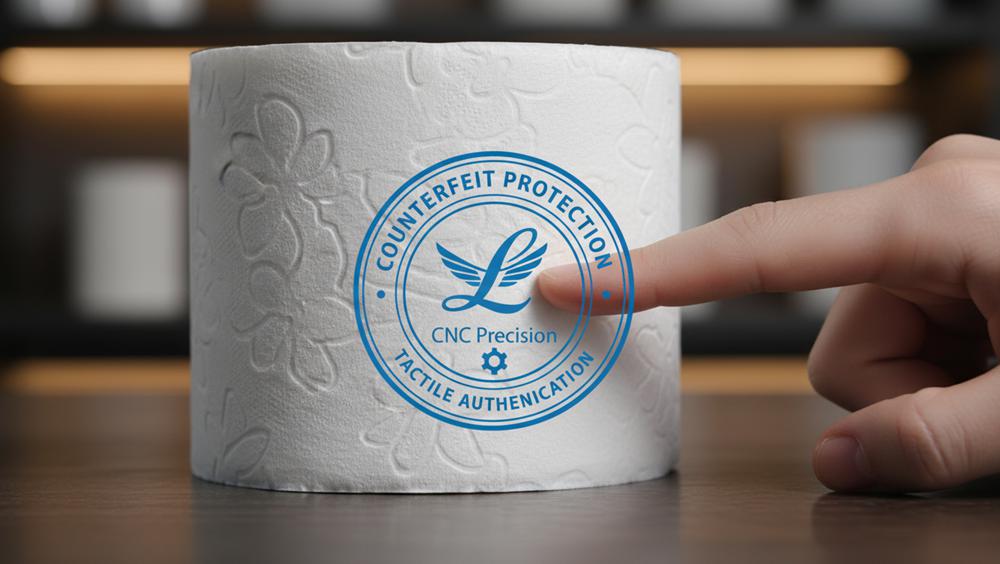 Custom embossing creates a 3D tactile barrier. Using CNC patterns prevents counterfeiting and ensures end-users receive authentic, high-purity virgin wood pulp products from Top Source Hygiene.