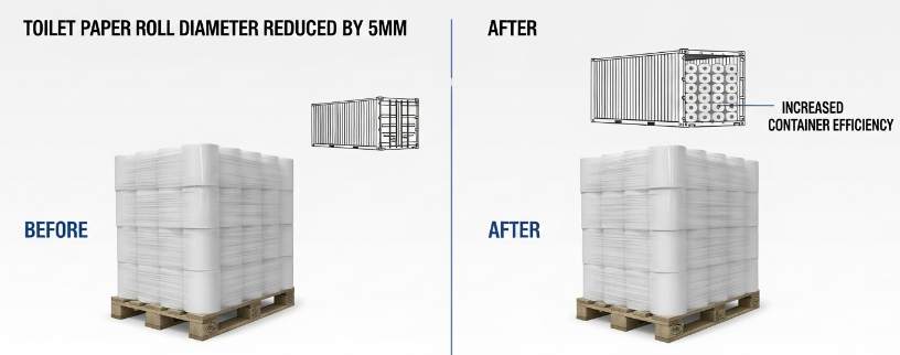 Right-size roll widths and pack layouts to cut cubic volume — specs and trade-offs